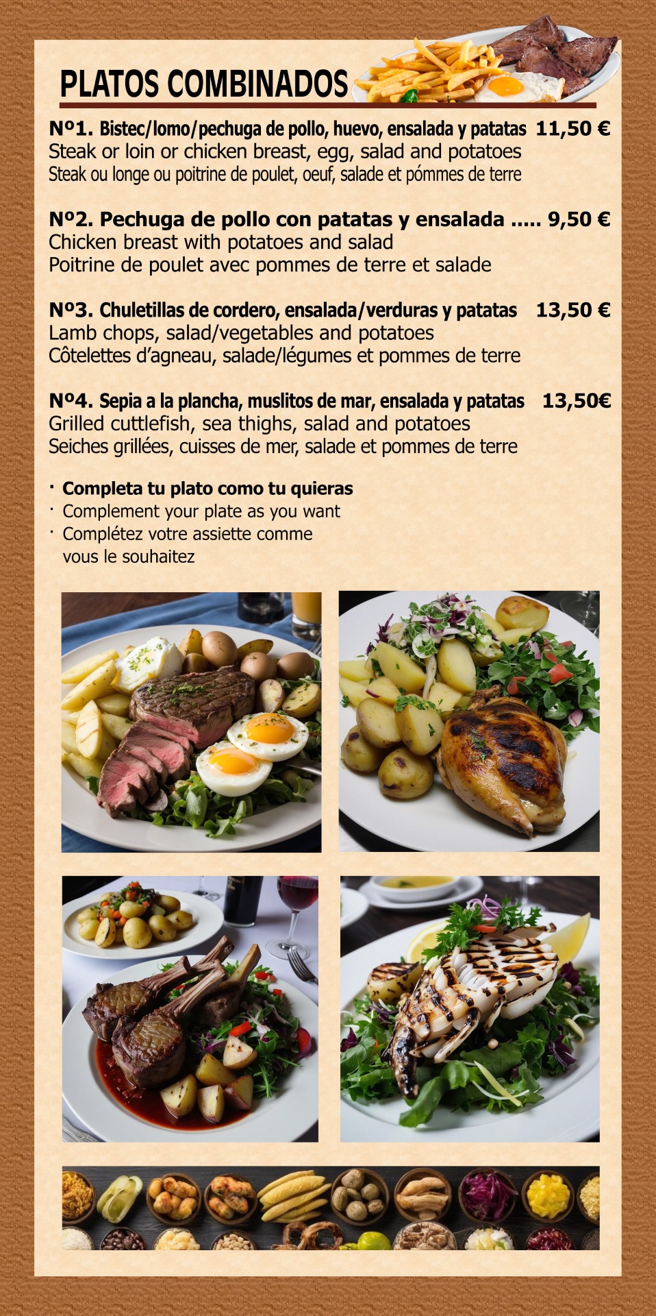 Imágenes orientativas. Consulte el menú del día por teléfono o whatsapp
