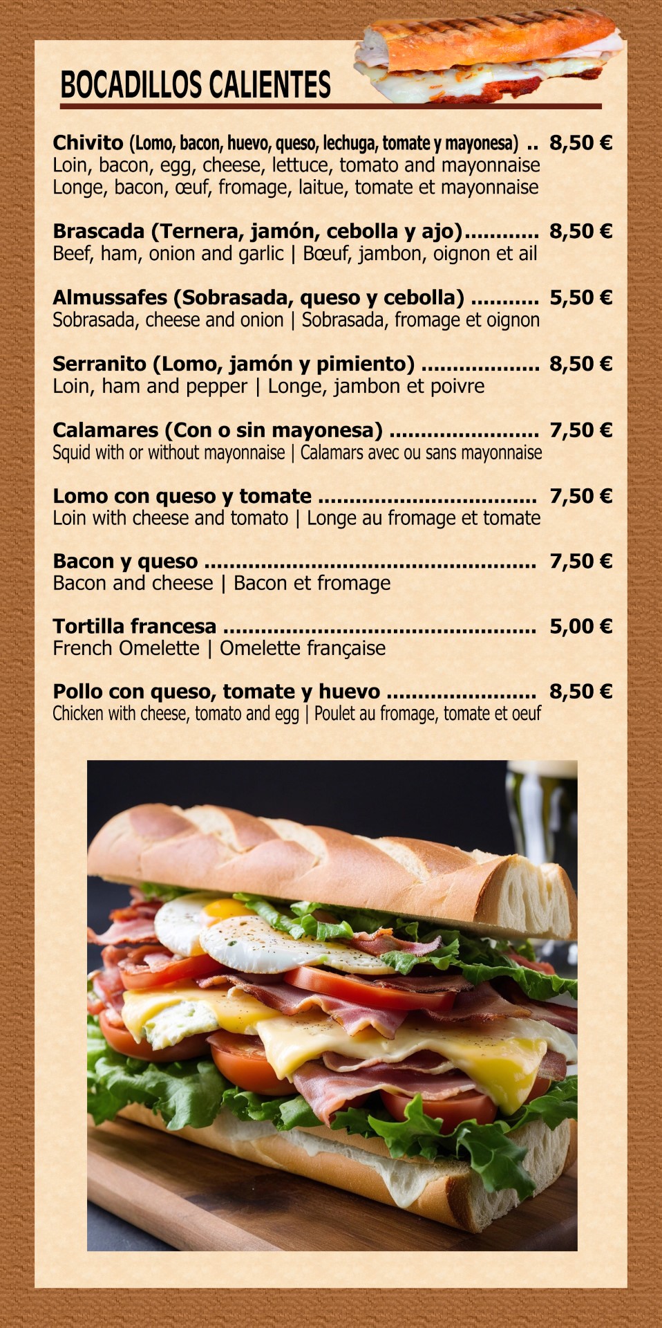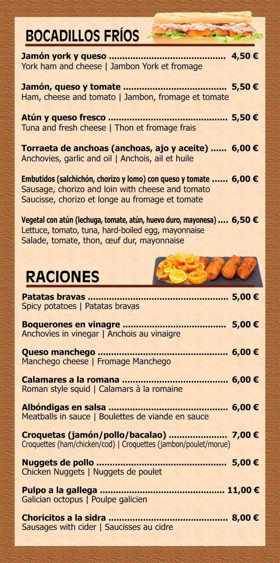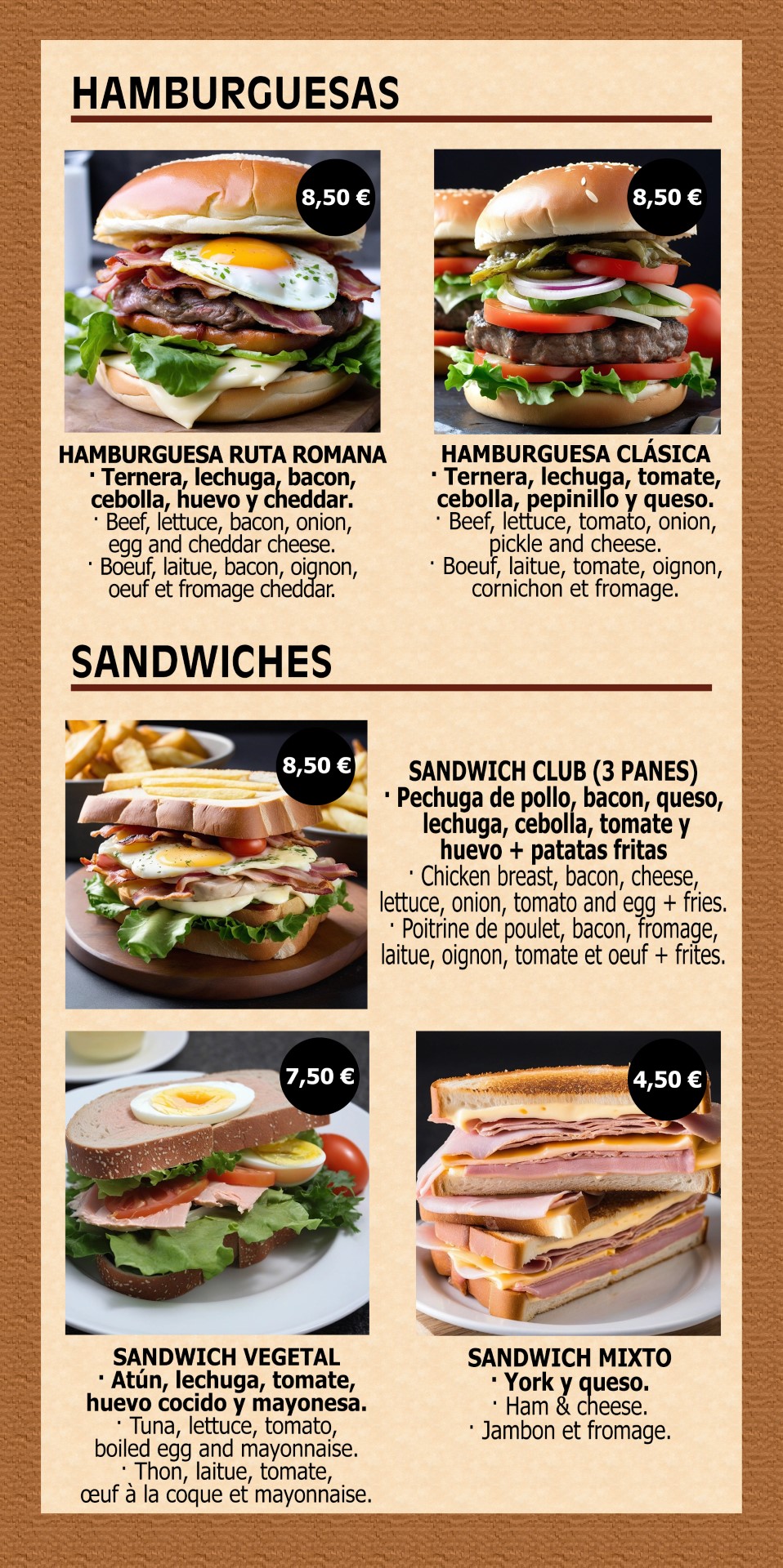 COMIDA RÁPIDA | FAST FOOD MENU | RESTAURATION RAPIDE